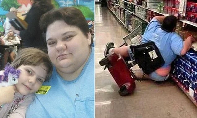 “These are my 15 minutes of fame. You’ve probably seen the picture. The worst thing about it is that she makes people think that a fat woman falls out of a stroller because she is too lazy to get out of the stroller to get the juice she wants to buy.”
