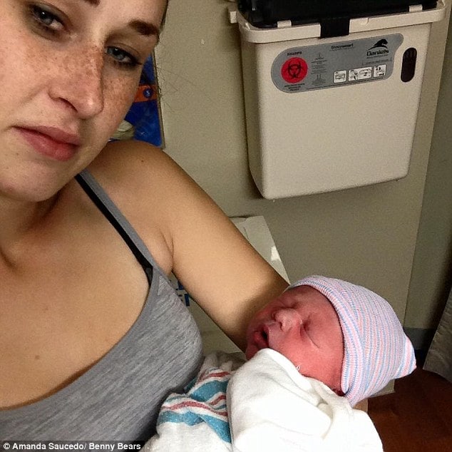 Amanda spreads awareness by presenting Benny Bears to new parents along with a short tale written by her son.